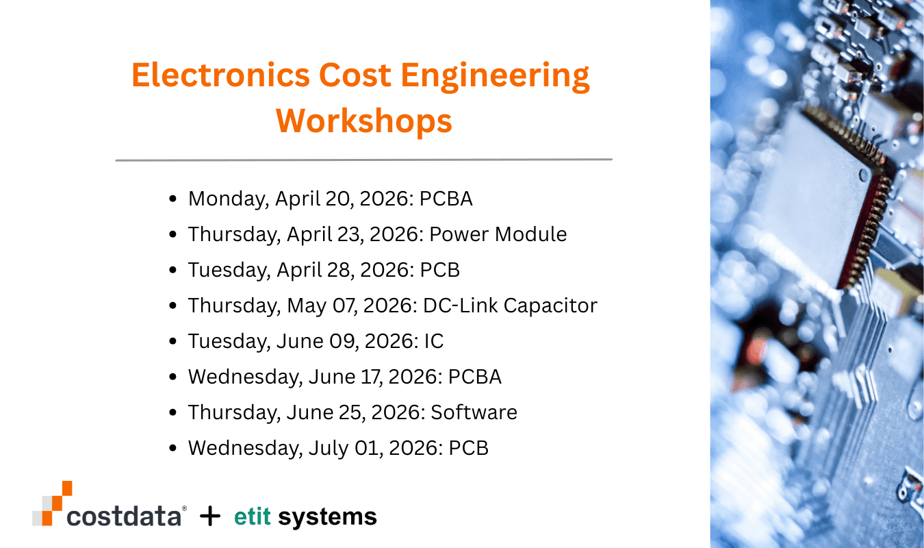 Nos ateliers virtuels sur l'ingénierie des coûts électroniques offrent aux ingénieurs des coûts une occasion unique de maîtriser le calcul des composants électroniques complexes. Ces ateliers sont conçus pour fournir des connaissances théoriques approfondies et des aperçus pratiques, et couvrent les subtilités des fonctionnalités et des étapes de processus pour les composants électroniques clés.